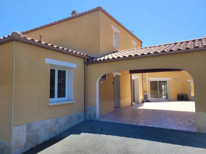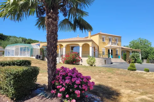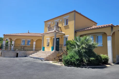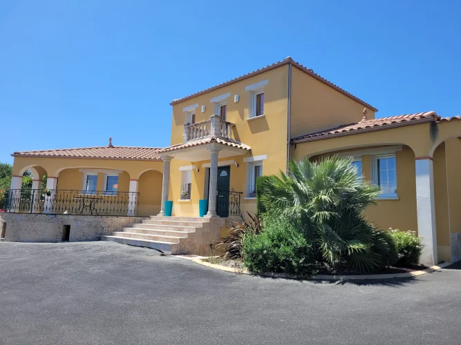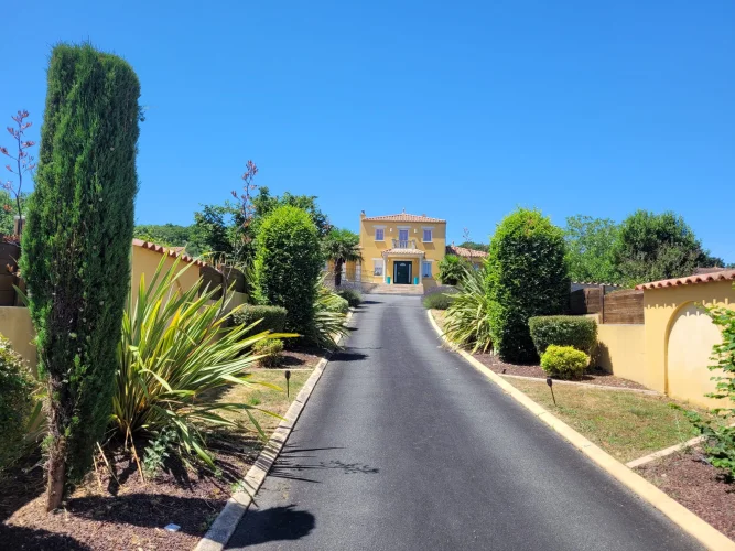 Built on a landscaped and enclosed plot of 2,202 m², the house offers approximately 240 m² of living space distributed across three levels:
