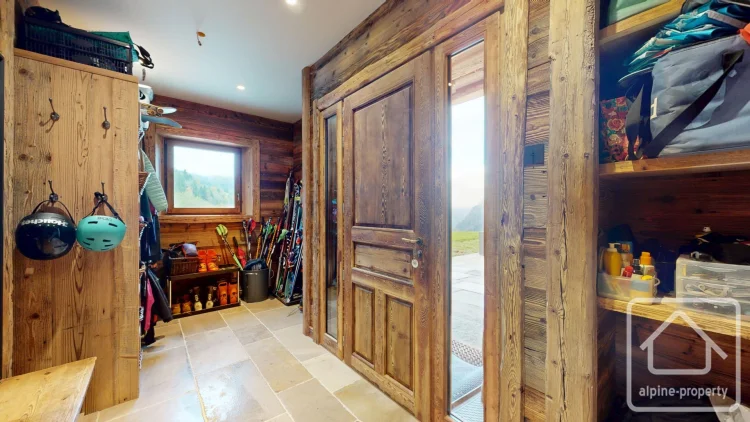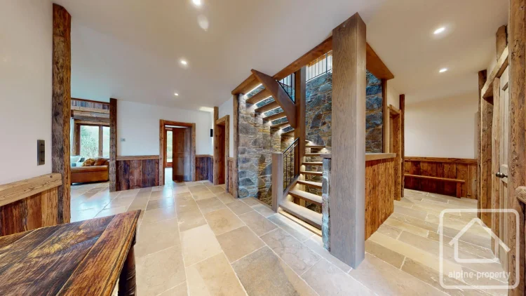 This truly exceptional property has the grandeur of an exclusive Colorado ski lodge, it's majestic position overlooking the private protected 19 200m2 domaine, the tree-lined driveway leading to the valley of Les Houches beyond.