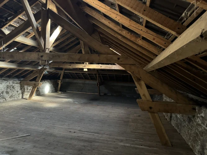 Exclusive! 1 hour\'s drive from Limoges airport, in a quiet street in the heart of Bourganeuf, a historic medieval town offering a wide range of amenities, a large stone house comprising on the ground floor entrance/hallway, kitchen/dining room, bright living room with its two large windows, WC, a room with separate entrance. At the end of the corridor there are a few concrete steps giving access to the rear of the house which could be independent comprising a shower room with WC and a large room of 25m2 and garage. Upstairs there is a large landing with beautiful original parquet flooring leading to 4 bedrooms, 1 of which has a double aspect, bathroom with WC. The large wooden staircase continues to a landing which gives access to a huge convertible attic. Large cellar with several storage rooms where the boiler and oil tank are located. In need of updating but fully habitable this house benefits from double glazing and mains drainage. A great family home with many options to enjoy the large separate spaces and due to the proximity to town, great potential for bed and breakfast/airbnb. Contact Sarah Browne N.B. Information on the risks to which this property is exposed is available on the Géorisques website: (C. envir., art. R. 125-25, I)