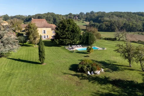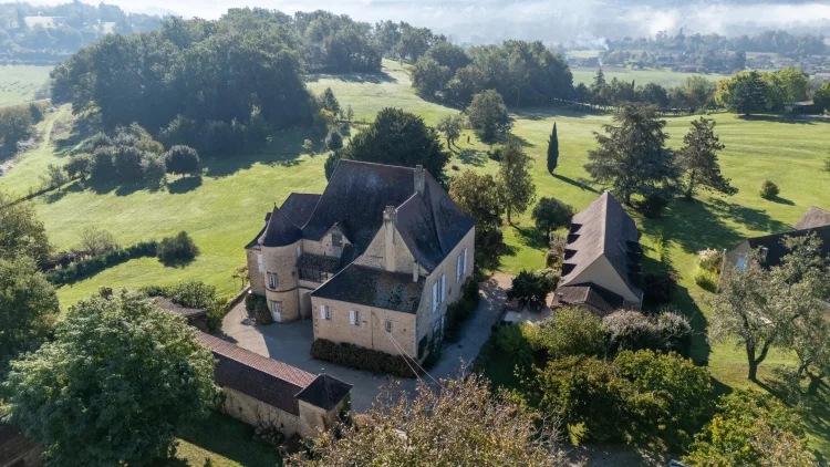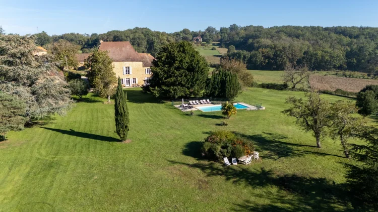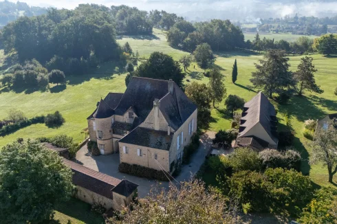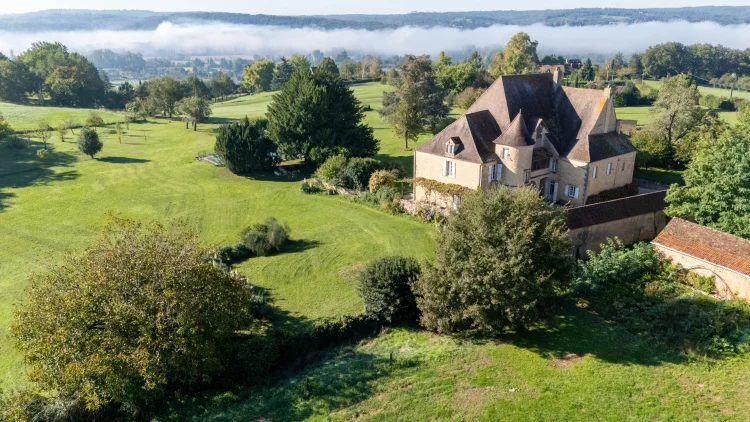 This exceptional French manor for sale in the Dordogne Valley is set on 4.7 hectares of beautifully landscaped grounds with breathtaking panoramic views. Just a short walk from village amenities, the property combines history, elegance, and modern comfort, making it the perfect choice for a luxury family home, a boutique gîte business, or an investment property in France.