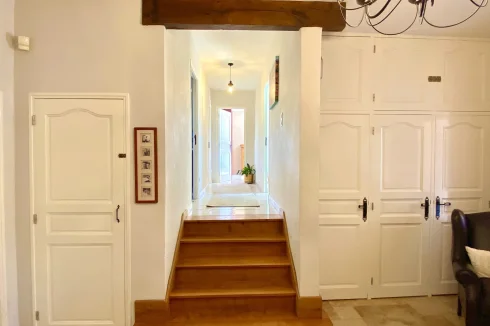 You enter the property via a large, gravel driveway with ample parking. A covered porch leads you directly into a large inviting hall. To the right of the hall you will find an equipped family kitchen, dining area, a useful utility room leading off from the kitchen and access to a terrace with views. The 4th bedroom can also be found on this side of the house and has its own terrace. To the left of the hall is the bedroom wing housing 3 bedrooms and a large bathroom with a walk-in shower. The master bedroom has the added bonus of its own small terrace with a view of the pool for that morning coffee and croissant.