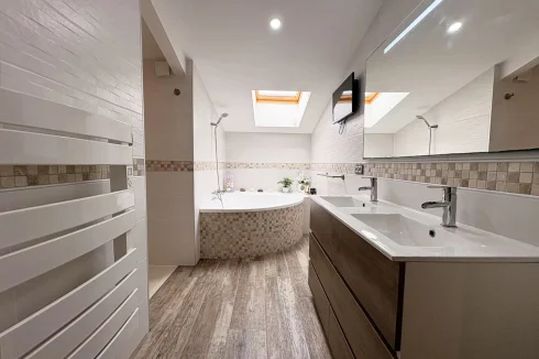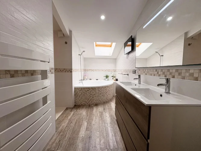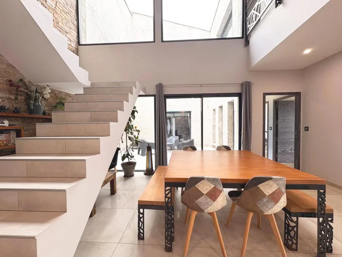 As soon as you enter, you'll be seduced by the generous volumes of the living room with its open-plan kitchen, extended by a utility room, a laundry room and an intimate patio. The ground floor also features three beautiful bedrooms, a contemporary shower room and two separate toilets.