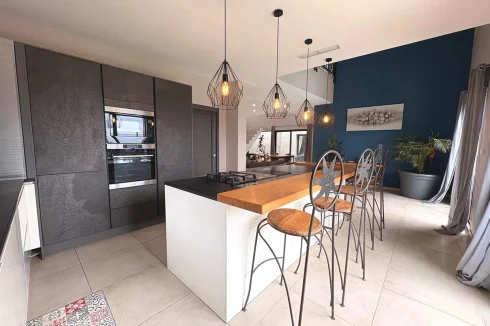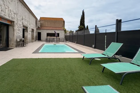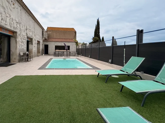 Designed with eye for detail, this property combines charm, modern comfort and top-of-the-range features in a sought-after setting. The surprising villa is located in a peaceful cul-de-sac just a few steps from the centre of Montady, and highlights refinement, practicality and privacy. Set on a private plot, it offers a spacious living area with three bedrooms, an en suite master bedroom, an office (that can serve as an extra bedroom), a games room, and even a spa. Outside, there is a terrace with pool and summer kitchen as well as a inner patio.