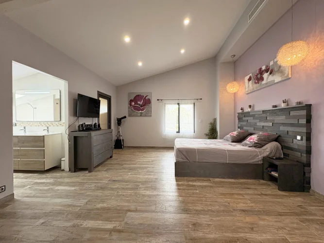 Upstairs, the villa reveals a space dedicated to well-being and serenity: an office, a games room and a superb master suite with en suite shower room and dressing room. A spa area completes this level.