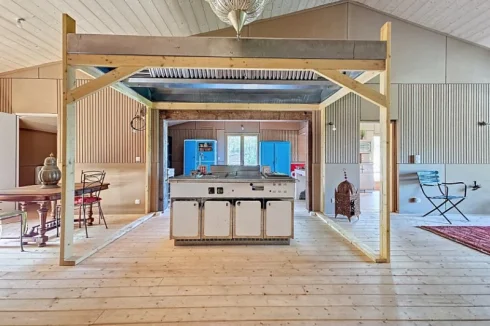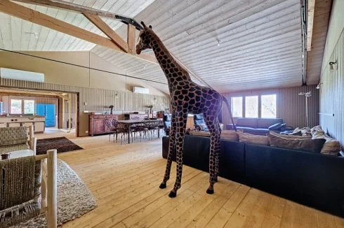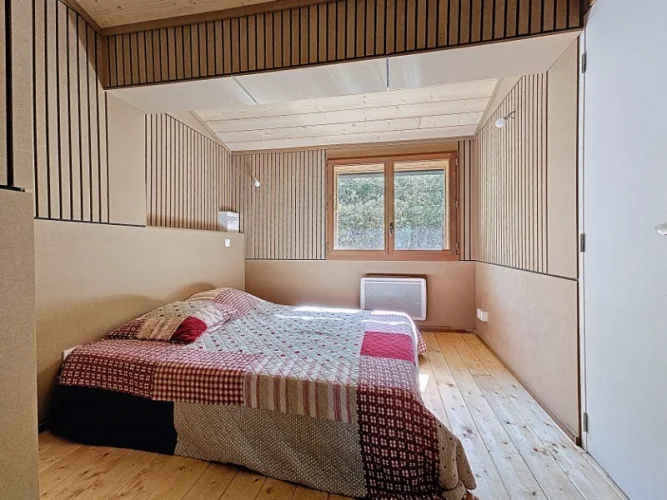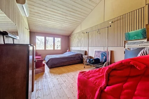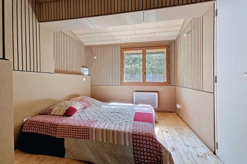 Self-sufficient in terms of water, it also features annual yield solar panels, wood-fired central heating, and reversible air conditioning.