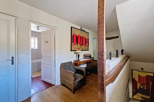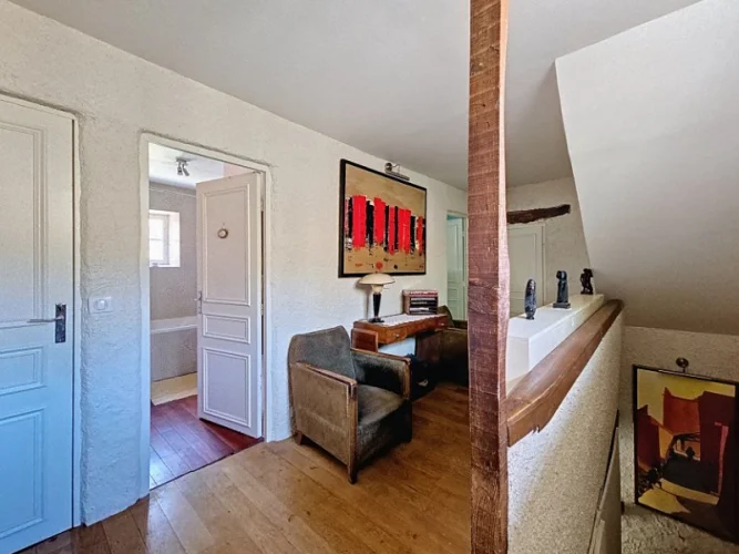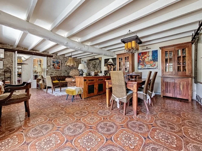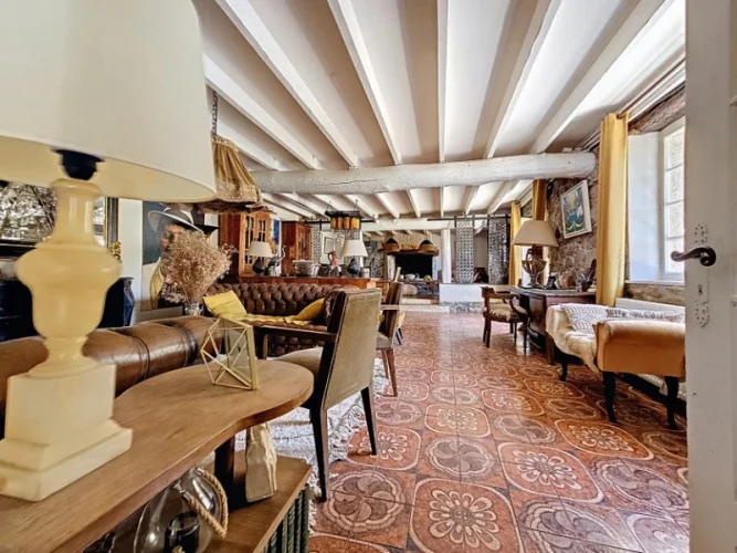 The main house is comprise as follow: on the ground floor, a spacious entrance hall, a double living room, a large fitted kitchen with a working bread oven, a guest WC, a laundry room, a hot water/sanitary room, and a boiler room. The first floor features a living room, six bedrooms, a dressing room, an office, a bathroom, a double shower room (two showers and two sinks), and two WCs.