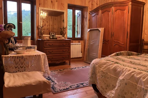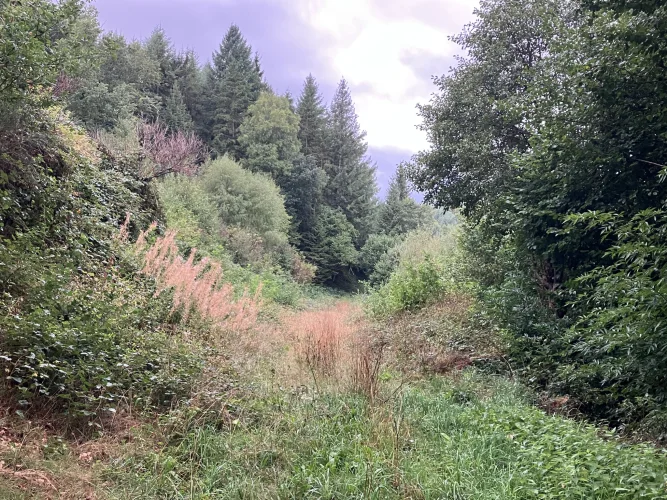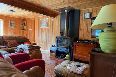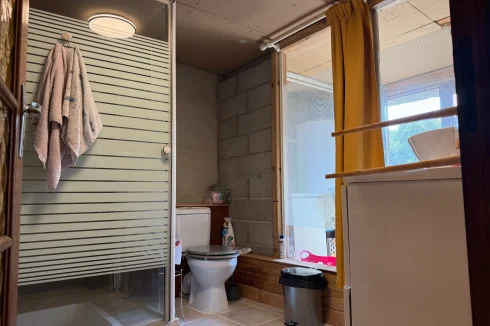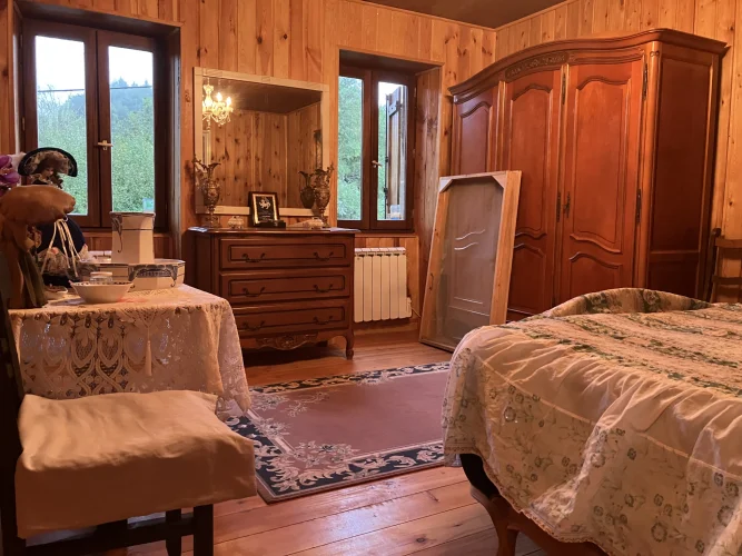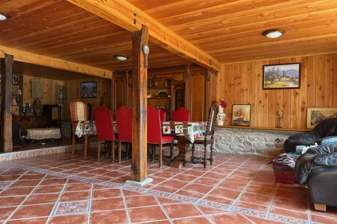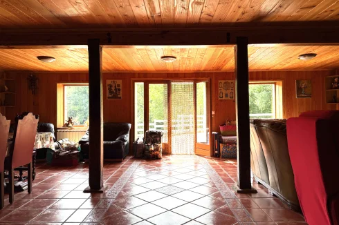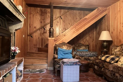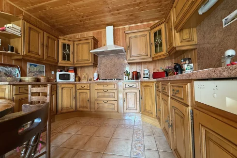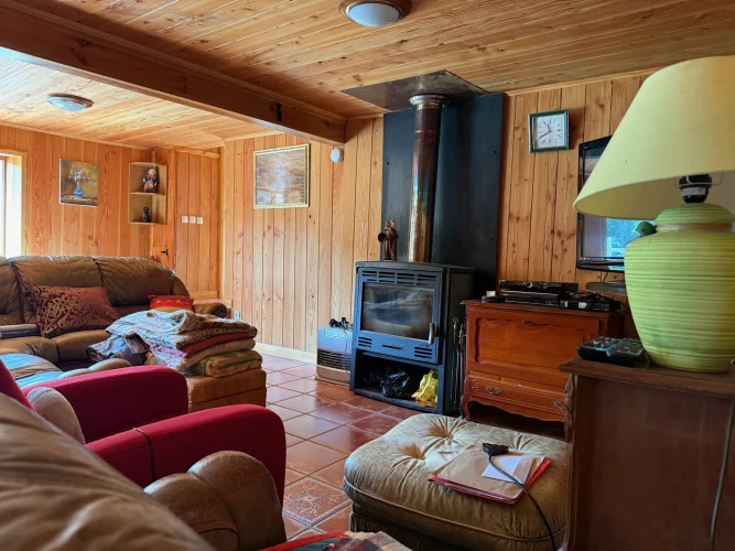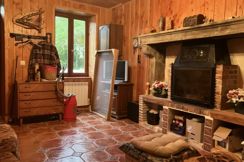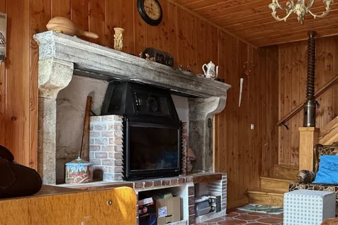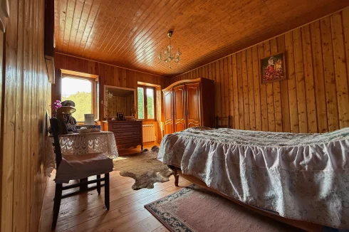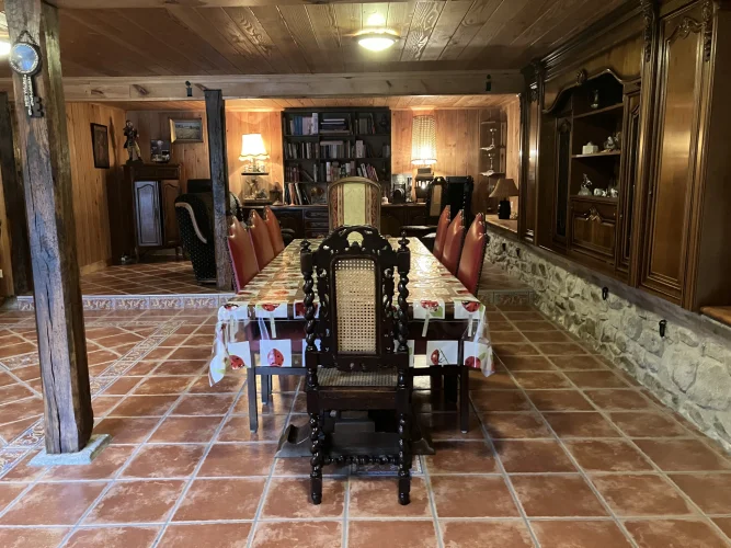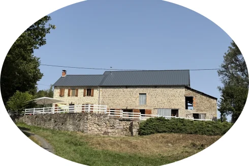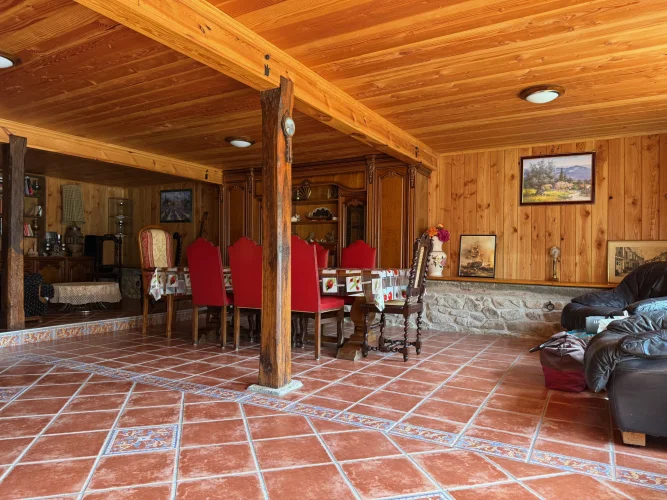 Auv 1191: Without neighbours: long farmhouse, total peace, 1.1 hectaresThis beautiful building used to be the dwelling house and barn of a former watermill located further down, which gives it a wonderful setting in the middle of nature, with the land running all the way down to a small river. The land surrounds the house completely and there are several fruit trees. There is also a long strip of deciduous woodland, where the water supply for the mill once ran, a branch of the river. The house is reached via a well-drivable dirt track and there are no direct neighbours. A large terrace overlooks the valley with stunning views.The habitable heated part of the house is currently 142m2, but the building obviously has much greater potential. The ground floor has a living room (18.5m2) with wood stove and authentic stone fireplace. Next to it is a kitchen/dining room (18.5m2) with wooden units. A part of the barn was integrated into the house and can be accessed from the kitchen or directly through the French doors onto the terrace. This space was converted into a spacious sitting and dining area of no less than 66m2. Also on this level there is a bathroom (5m2) with shower and a separate toilet (1.5m2). The entire ground floor has rustic tiled flooring. On the first floor of the original house there are two bright bedrooms (12m2 and 15.5m2) and a smaller room (6m2) with a nice pine floor. The staircase to the first floor is also pine and recent. The attic is insulated at floor level and currently not directly accessible, but it is very high and could be converted.On the right side of the barn a second bathroom (6m2) was created, not yet fully finished, as well as a multifunctional room (18m2), which could for example become an extra bedroom, or a second living space if rooms were added upstairs.At the back, at ground level, there is a large barn of 120m2 with a ridge height of 7m, a storage room (20m2) with WC and sink, and two open areas on the sides of the building of 16m2 and 40m2. Behind the house there is a spacious carport, and at the front a covered area is provided for parking a car. The house is heated by a combination of electric radiators and a wood stove.The water for the house is pumped from a deep well with pump house (5m2) next to the house and supplies running water all year round, even in dry periods. There is no mains water.The roof of the entire building was recently renewed after storm damage, with extremely strong steel sheets. The septic tank was once installed according to the standard, but is no longer compliant.The possibilities here are obviously very extensive, and it is rare to find a house with no neighbours.