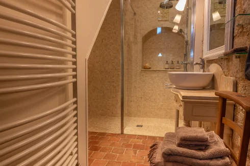 In a listed village, on a hill with the church as a neighbour. Two entrances to the property via a stone staircase and a gentle sloping incline.