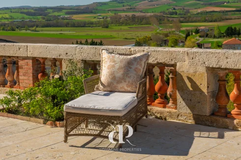 remarkable historic château overlooks the rolling countryside of Lomagne with sweeping panoramic views in every