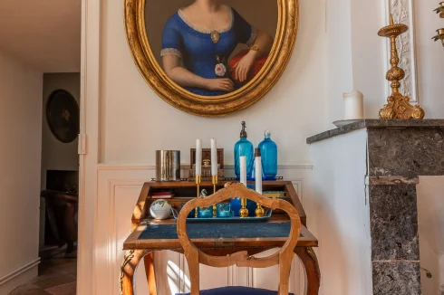 • Salon (28m2) old fireplace, high ceilings
