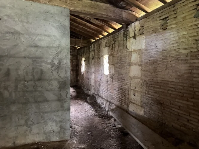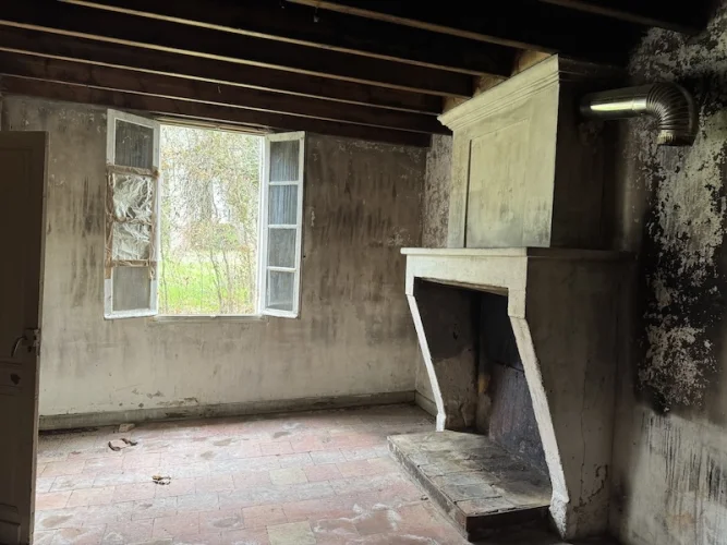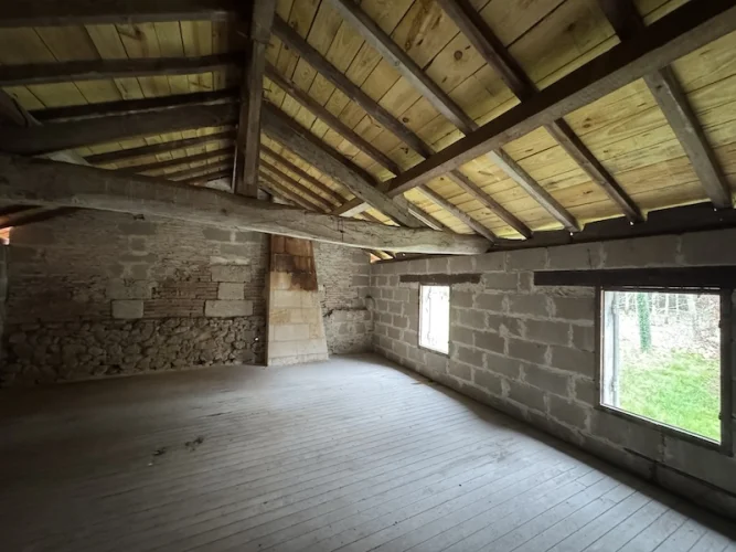 Very pretty stone house to renovate inside, this detached house is set on 2.5ha of land, there are no close neighbours. The house has a new roof, everything else is to renovate. There are two large downstairs rooms with stone fireplaces, an old shower room and WC to completely renovate. The stairs lead to a large attic room 60m2 this room could be converted to bedrooms and bathroom. Ther is a large open hangar and barn to the back of the house which could again be extended into if needed. The land is mainly woodland. The house is in a quiet location. Just 10 minutes’ drive from the Town with commerce. This house would suit someone who loves the countryside, and who is not afraid of renovations. There is no double glazing, no central heating. This house with woodland and no neighbours is a rare find. I have many more photos, please email for further details.