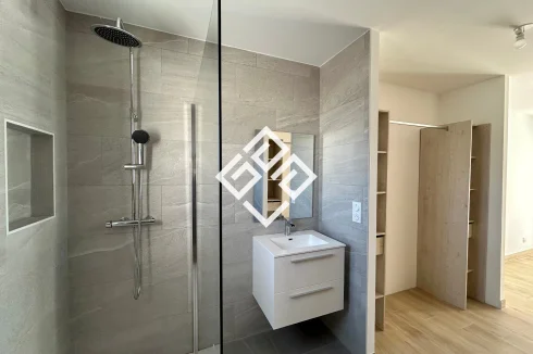 Stepping through the 1.76 m² entrance hall, you are immediately drawn to a spacious 51.22 m² living room bathed in light thanks to its large bay windows. It houses a cozy living room and a functional open-plan kitchen. A first bedroom of 11.66 m² with a closet completes this space.