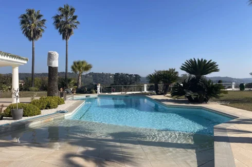 In a dominant position in the Cannes hinterland, just 15 minutes from the beaches and a few minutes from the main roads and the charming village of Auribeau-sur-Siagne, this villa enjoys a peaceful setting and offers a magnificent panoramic view over the mimosa-covered hills and down to the sea. Bathed in light thanks to its large picture windows, Villa Les Mimosas features a modern Provençal style.