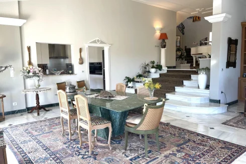 Set on a flat 2,575 m² plot perfectly oriented to the south, the property stands out for its many outdoor amenities creating different atmospheres: a large free-form swimming pool, a covered terrace, a pool house with summer kitchen, a covered exotic wood bar, an outdoor lounge, a jacuzzi, a fountain with its fish pond animated by a pleasant waterfall, as well as a vegetable garden.