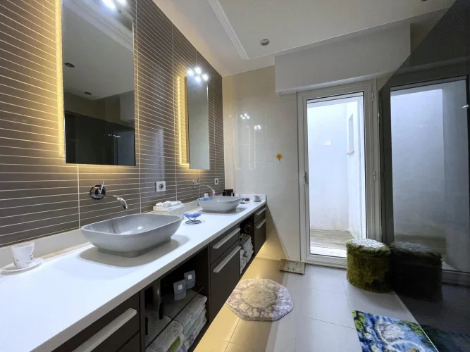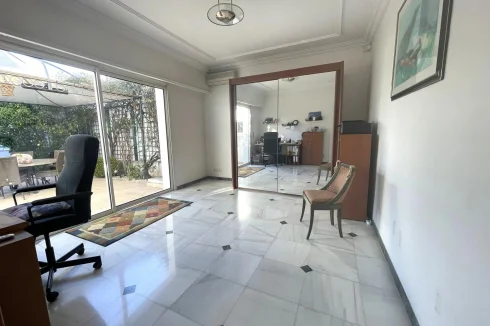 Inside, the house offers an elegant entrance leading to a spacious living room opening directly onto the terrace and garden, a large master bedroom with en-suite bathroom, two bedrooms sharing a bathroom, as well as a spacious independent studio with its own shower room. Several additional spaces complete the layout: office/extra bedroom, laundry room, semi-open kitchen with pantry.