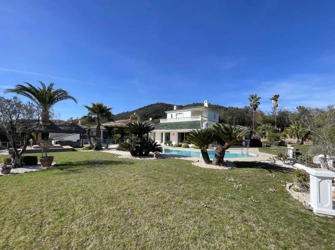 Comfort and amenities include: underfloor heating (fuel), air conditioning, wine cellar, outdoor kitchen, exterior shower and toilet, pool equipment room, a triple closed garage plus another closed garage, providing parking for 4 cars in total. The property is also secured with a double alarm system, an electric gate, and roller shutters.