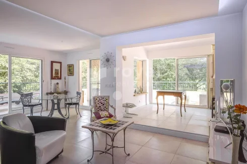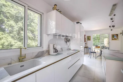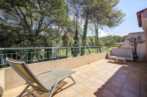 Fully renovated with high-quality materials. It offers breathtaking views of the Royal Mougins Golf course and surrounding forest, along with a large corner terrace.