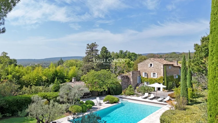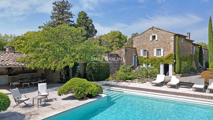 Exceptional 19th-century property with magnificent garden, swimming pool and caretaker's house. Idyllically located in green surroundings just a few minutes from the iconic village of Gordes, in the heart of the golden triangle of Luberon, this unique property exudes Provençal elegance. The main farmhouse stands out for its authentic architecture and refined interior. At the garden level, vast reception areas overlook the gardens, including a family kitchen, a bright dining room, a living room with fireplace and a billiards room. Upstairs, there are three bedrooms, a shower room, a bathroom, a second living room and two master suites (one with a private terrace). The remarkable gardens stretch over a hectare of land and are home to over 100 rare species. You will find a swimming pool (13 x 7m) and its pool house, delicate fountains, an ancestral borie, magnificent dry stone terraces, an aviary and a greenhouse. A true landscaped work of art, the gardens are the embodiment of Mediterranean splendour. The caretaker's house sits on a separate plot. Additional facilities include a vast fish pond and an old tennis court (in need of restoration). This rare property has been perfectly maintained by successive owners. It presents the perfect blend of authenticity and exclusivity in a prime location, just a stone's throw from Gordes in the heart of the Luberon.
