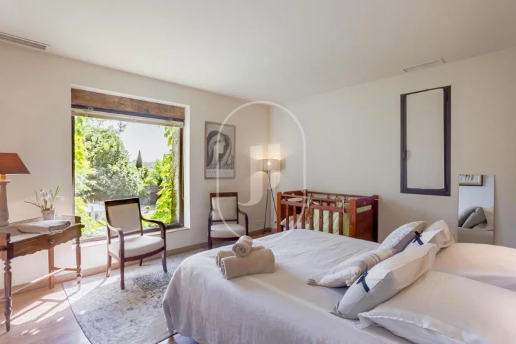 On the second floor landing, a magnificent library welcomes you, where the house's night space is located. This floor comprises three bedrooms, including a master suite, a bathroom and a splendid suite with its own study.