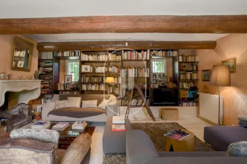 The entrance is via a hall that distributes the living spaces on either side. A sublime lounge/library occupies the left-hand side of the house and features an authentic, convivial fireplace.