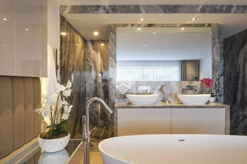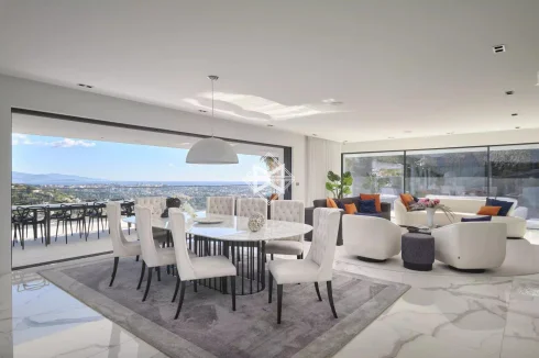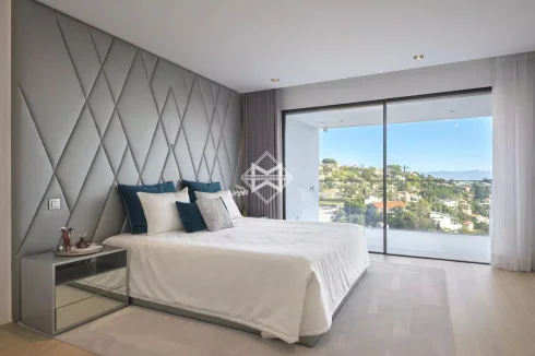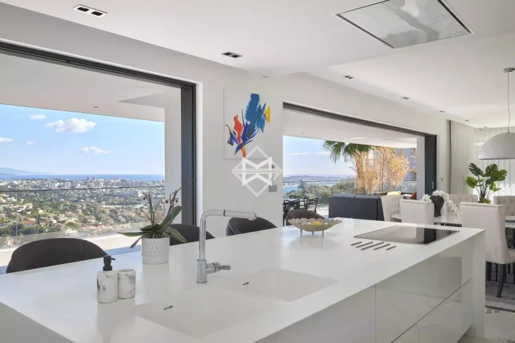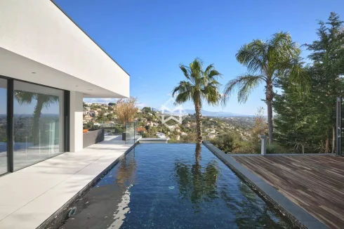 Located on the heights of one of the sought-after areas of Cannes, this elegant contemporary of recent construction benefits from a magnificent panoramic view down to the sea.