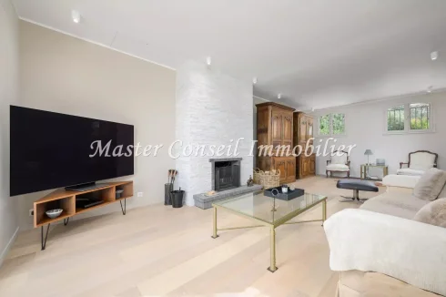 Set on a flat, landscaped, and wooded plot of 2,500 m², the property offers approximately 300 m² of living space (including pool house). The natural and peaceful surroundings feature a superb mosaic-tiled swimming pool with a 110 m² sun deck, and an outstanding pool house equipped with a professional kitchen, summer lounge and dining area, all opening onto a private garden with no overlooking neighbours. A second 60 m² terrace, partially covered, provides a cosy outdoor space under mature trees.