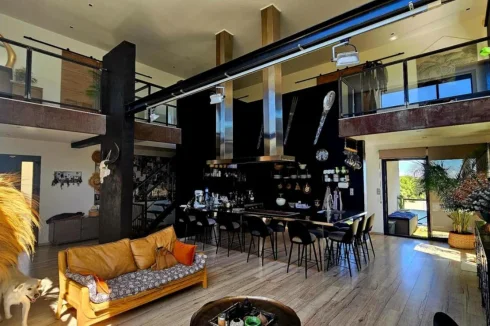 Upon entering, the magnificent living room with cathedral ceilings reveals a subtle blend of minimalism, warm materials, and sophistication. The custom-designed kitchen, equipped with professional fittings, will delight even the most discerning tastes. A pantry, laundry room, separate toilet, and storage spaces enhance the comfort of living.