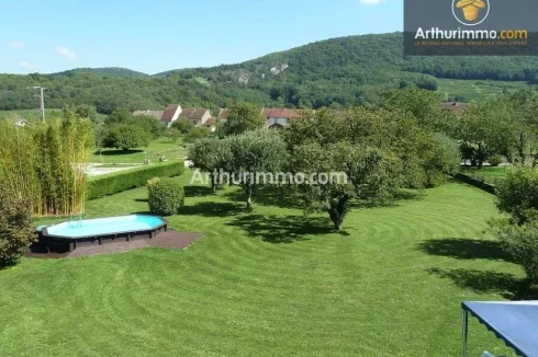 The enclosed park with trees of 3 337 m2, an above ground wooden swimming pool and an incredible view on the Revermont sublimate this exceptional house.