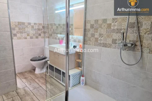 The second semi-detached house of about 100 m², has an equipped kitchen, a living room with wood stove, a shower room, a bedroom, a dormitory, 2 toilets. Ideal for a tourist or annual rental.