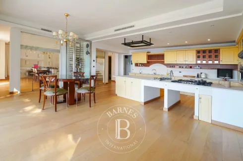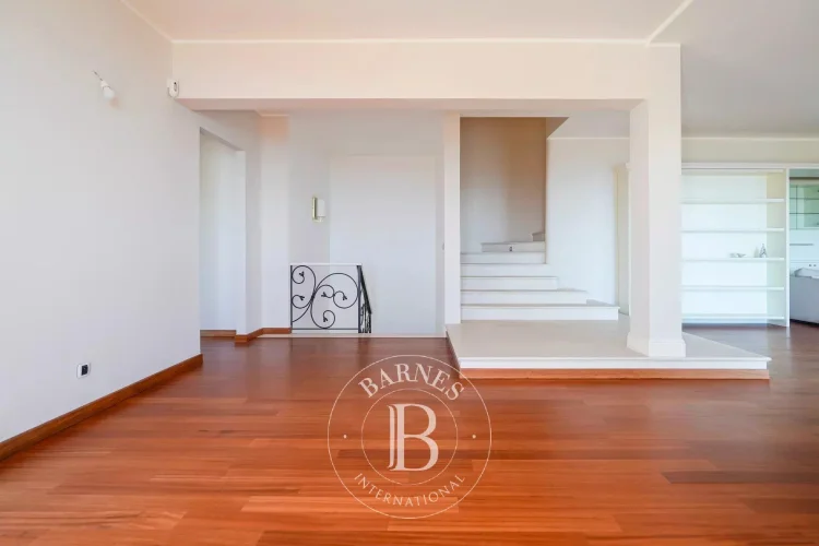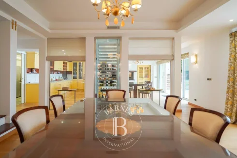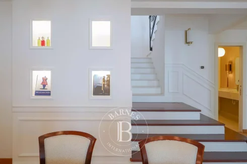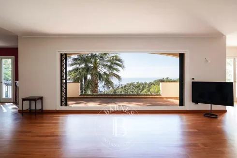 Laid out over three levels, the house comprises four bedrooms, including a master suite, an adjoining apartment and a separate studio apartment for staff. The large living room with fireplace has large picture windows and beautiful panoramic terraces, inviting you to admire the view. On the garden level, an additional room can be converted into a gym or pool house, depending on your needs.