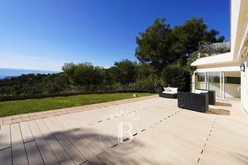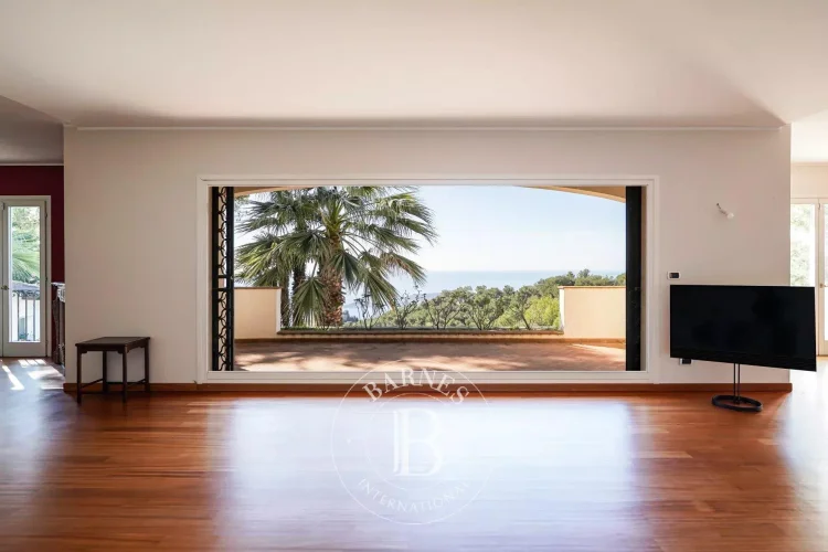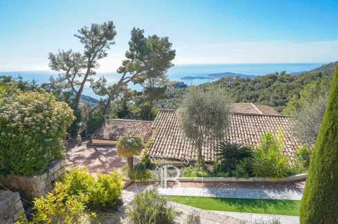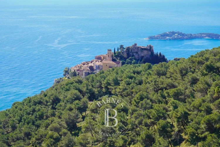 This spacious 365m² (3,929 sq ft) villa, set on a 2,630m² (28,309 sq ft) landscaped plot planted with Mediterranean trees and shrubs, enjoys a peaceful setting, overlooking the village of Èze.