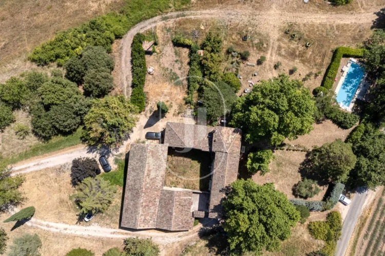 Outdoors, the estate provides a rare setting. The 5 hectares of land, peaceful yet not isolated, include gardens, natural spaces and several outbuildings: annexes, cellars and barns. A swimming pool completes the ensemble, promising moments of relaxation under the Provençal sun. Its location offers open views across the surrounding countryside.