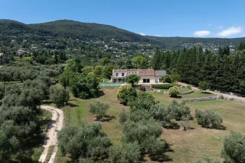 The 400 sq.m villa comprises a large cathedral living room with mezzanine, 6 bedrooms and 5 bathrooms, including an independent apartment. It is nestled in flat, wooded grounds of around 7800 sq.m that harmoniously blends tranquility with the surrounding countryside, featuring a beautiful 13x6m swimming pool.