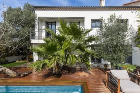 In the heart of a sought-after area, this bright, south-facing house benefits from large bay windows that open up to the outside. The spacious, functional living space includes a lounge/dining room opening onto a terrace and the swimming pool, an open-plan fitted and equipped kitchen, a dressing room, a utility room and a study or bedroom with en suite shower room. An independent studio can also be converted to suit your needs.