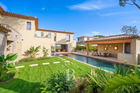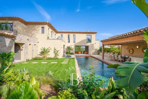 Located in a private estate just a few minutes' walk from Place des Lices, this magnificent new villa of 427 sqm with its contemporary and traditional charm has been tastefully furnished and decorated throughout.