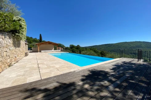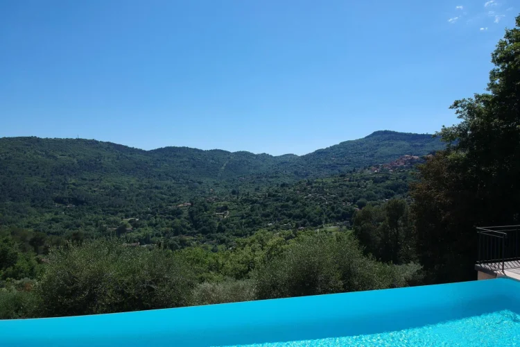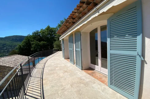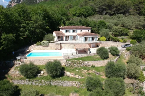 Just 6 minutes by car from Tourrettes sur Loup, this most attractive villa is situated in a wonderfully peaceful and green environment with lovely views over the Loup valley and towards the village of Bar sur Loup. Built in 2002, the extremely well-appointed villa has 156m2 of habitable space laid out over two floors, with a large basement offering potential to extend the habitable space: