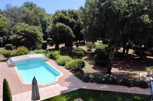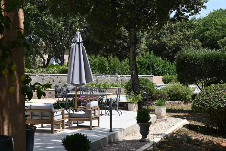 Our opinion : The outdoor spaces are a true haven of peace: a softly contoured swimming pool (8x6m), with a protective cover, fits seamlessly into this lush setting. Several terraces allow you to enjoy full sun or cool shade, depending on the time of day.