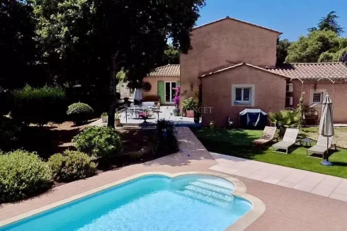 Nestled in one of the most sought-after villages in the region, in the heart of a peaceful and leafy residential neighborhood, this elegant Provençal-style villa, 167 m² (148.6 m² of living space) invites you to embrace the art of Southern living.