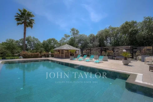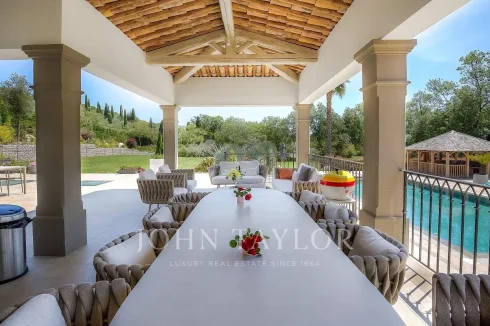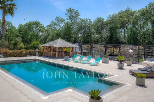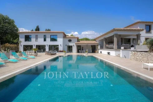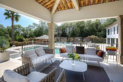 A prestigious residence in an exclusive setting, in absolute tranquility, surrounded by landscaped gardens of approximately 5,536 m². This "coup de cœur" property is located near the villages of Valbonne and Mougins, just 30 minutes from Nice International Airport.