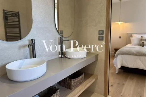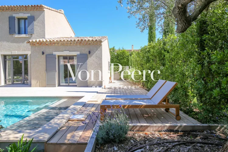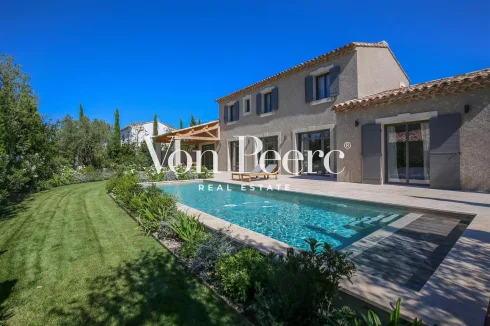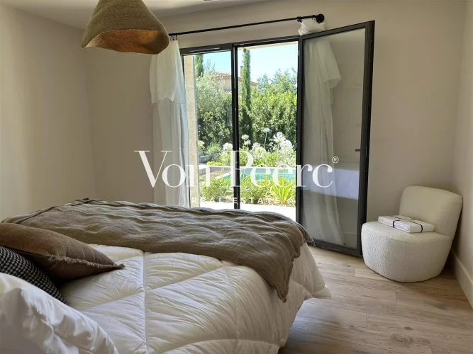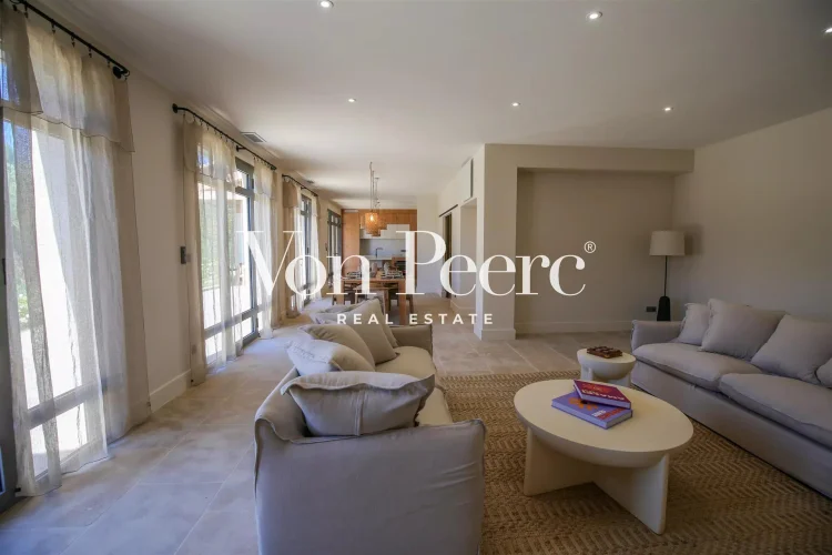 Ready-To-Live-In bastide-style house, located in a quiet residential area just 1 km from the village center, accessible on foot. The house, very well laid out, consists of an entrance with guest toilets, a kitchen, a dining room, a bright living room, a ground-floor en-suite bedroom (with bathroom, dressing room, and separate toilets), and a laundry room with direct access to the garage.