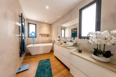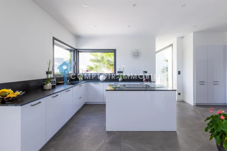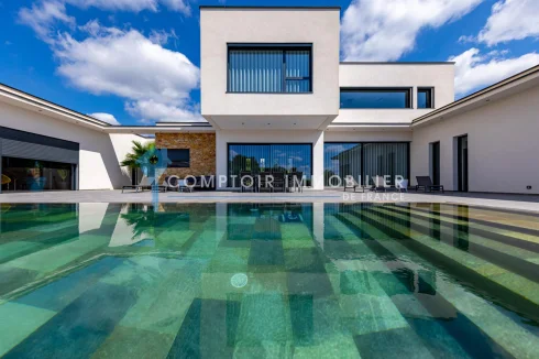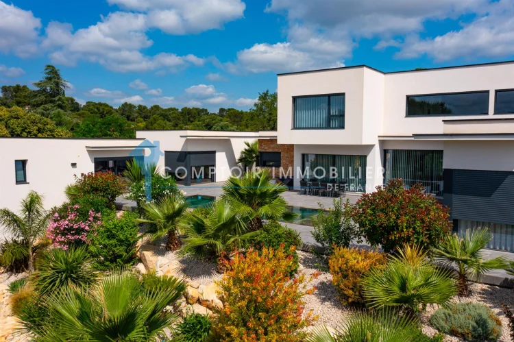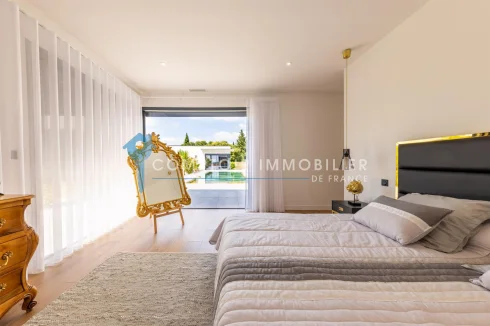 On the heights of Nîmes, in the most sought-after area, close to the motorway exits, halfway between Avignon and Montpellier, contemporary architect-designed house, with elegant shapes and an ideal surface area. Located on more than 2900 m2 of land, this house is a rare product due to its quality of construction and its finishes, you understand, nothing is to be expected! Exceptional master suite, built-in jacuzzi, gym, double garage, cathedral living room and stone fence, and exterior granite paving, this house requires little maintenance. Ideally second home. Additional file and photos on request.