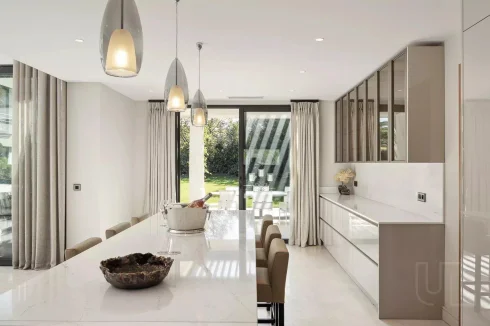 Designed with both luxury and comfort in mind, the villa features five generous bedrooms, including a magnificent master suite that offers privacy and indulgence in equal measure. A dedicated fitness area with sauna provides a space for wellbeing, while a state of the art home cinema invites private screenings in complete comfort.