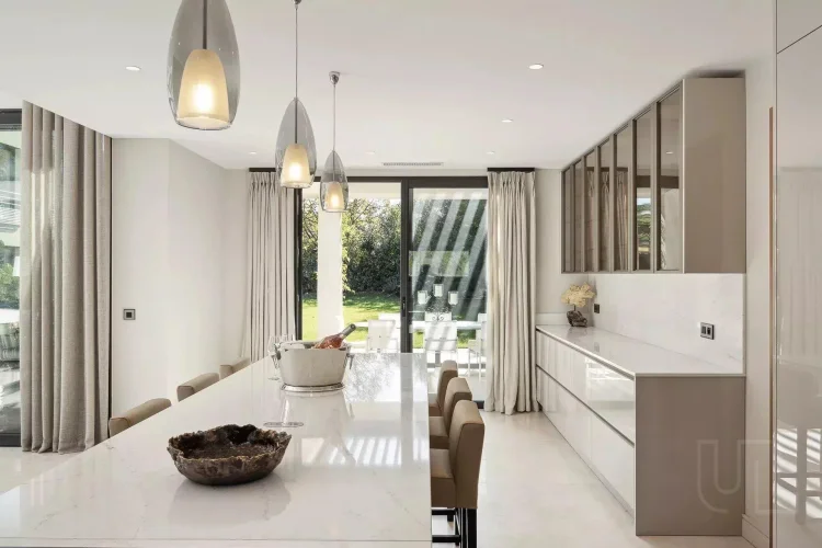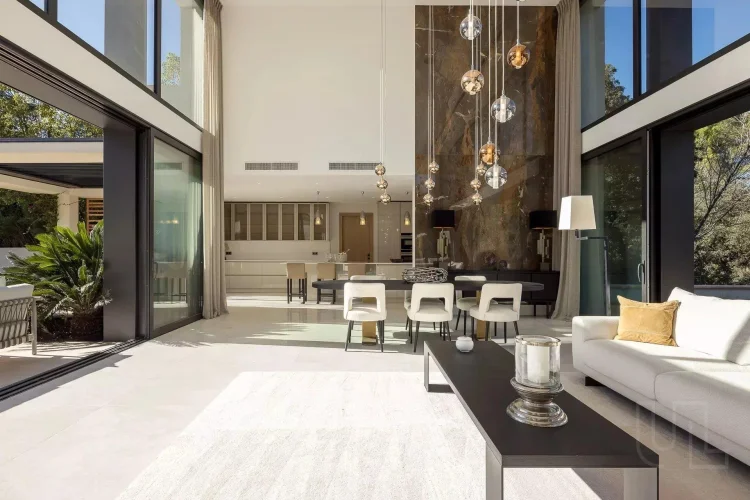 Newly constructed, the villa offers approximately 700 sqm of beautifully designed living space, defined by clean architectural lines and exceptional volumes. The expansive reception rooms open seamlessly onto a vast sun-drenched terrace, overlooking the south-facing swimming pool and the serene, uninterrupted landscape beyond.