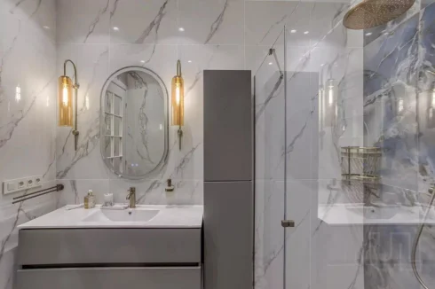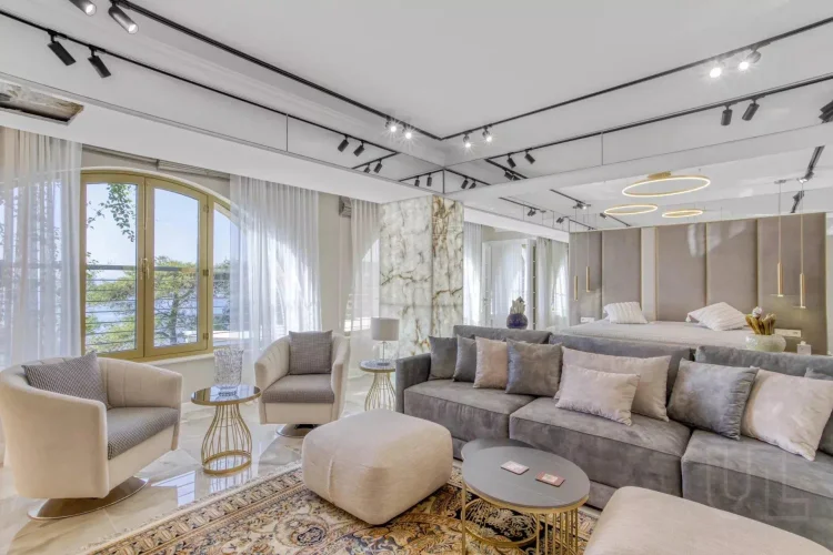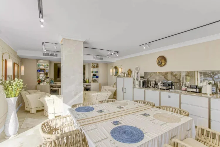 For visiting guests, a separate 75-square-metre apartment offers a discreet yet luxurious retreat. Finished to exacting standards, it enjoys private access to its own outdoor space and a seamless connection to the pool area, ensuring both comfort and exclusivity.