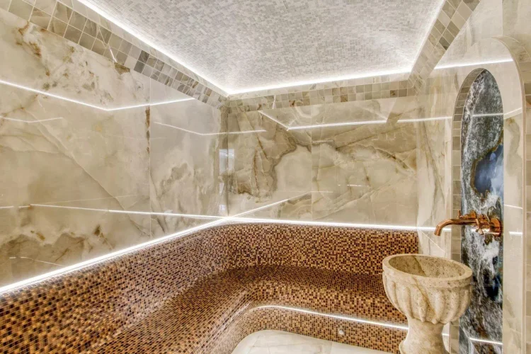 The villa’s orientation is one of its most striking features, offering sweeping sea views from every aspect of the home, infusing each moment with a sense of calm and timeless beauty. The vast pool terrace, designed not merely as a leisure space but as an extension of the home itself, is centred around a 60-square-metre pool house. Within, a hammam and sauna provide a private spa-like experience, while a grand stone staircase descends directly to the coastal path and the sea, where tranquil walks and ocean dips await those drawn to the water’s edge.