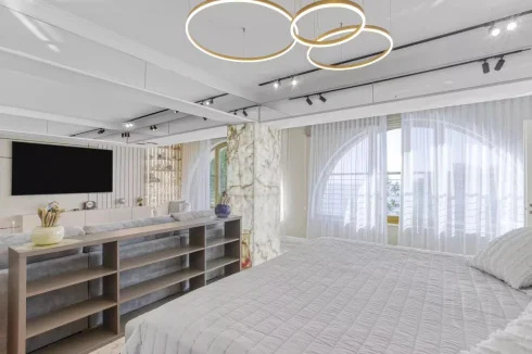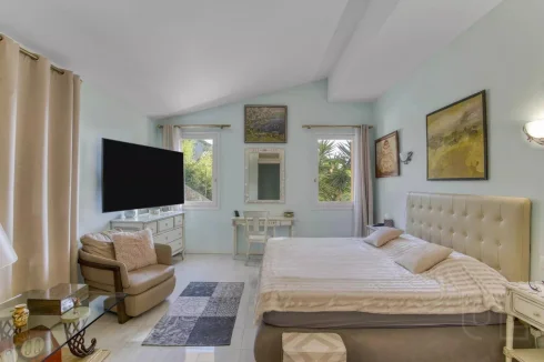The sleeping quarters are arranged with equal consideration to comfort and privacy, comprising five luxurious en suite bedrooms. At the pinnacle of the home, the master suite crowns the villa with commanding views, elegant proportions, and indulgent amenities, creating a personal sanctuary of the highest order.