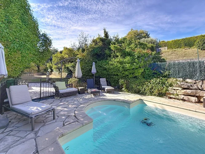 Located in a residential area of South Grasse, with quick access to Cannes and Mougins, this charming and well-maintained villa offers a flat plot of 1,200 m² enhanced by a pleasant swimming pool and several terraces.