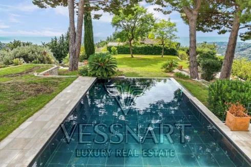 Set in the heart of a beautifully landscaped garden to 4200m2, the villa enjoys a peaceful and green environment, enhanced by a large heated swimming pool.