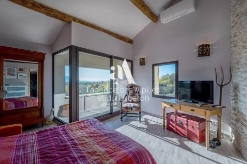 For sale in Gordes. Situated in a quiet area, close from the village, this pretty mazet dating from the early 19th century, offers approximately 140m2 of living space spread over two levels. On the ground floor, there is an outbuilding ready to be converted, communicating with a cosy and luminous living room with a fireplace, a fitted kitchen and a shower room with toilet. On the first floor, you will discover three large bedrooms, two of which have a shower room and one with a mezzanine and loggia giving access to a splendid view of the Luberon and the Alpilles. On a walled, wooded and landscaped plot of about 550m2 you have access to the 8x4m swimming pool and two stone sheds. You will be seduced by the southern exposure, the beautiful views of the Luberon and the Alpilles, the proximity of shops while staying in a quiet environment, near the most beautiful villages of the Luberon. Ideal for a primary or secondary residence.Perched majestically on a hill in the Luberon, this emblematic Provencal village is renowned for its dry-stone houses, narrow streets and spectacular panoramic views. Gordes offers an exceptional living environment. Its Renaissance château, historic churches, the not-to-be-missed Abbaye de Sénanque and numerous monuments all bear witness to its rich cultural heritage. The village is also home to art galleries, craft shops and renowned restaurants, creating a vibrant, cosmopolitan atmosphere. A village with a prestigious and serene way of life, in the heart of a preserved and inspiring natural environment.