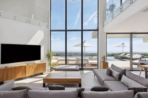 The villa features five generously proportioned bedrooms and a dedicated office, each space designed to offer both functionality and elegance. The heart of the home is a bright, open-plan living area that flows seamlessly into a fully equipped contemporary kitchen, all set against the stunning backdrop of panoramic sea views. The interiors are flooded with natural light, enhancing the home’s clean lines and modern aesthetic.
